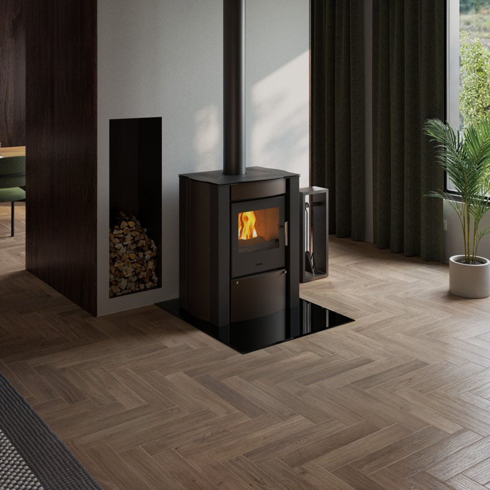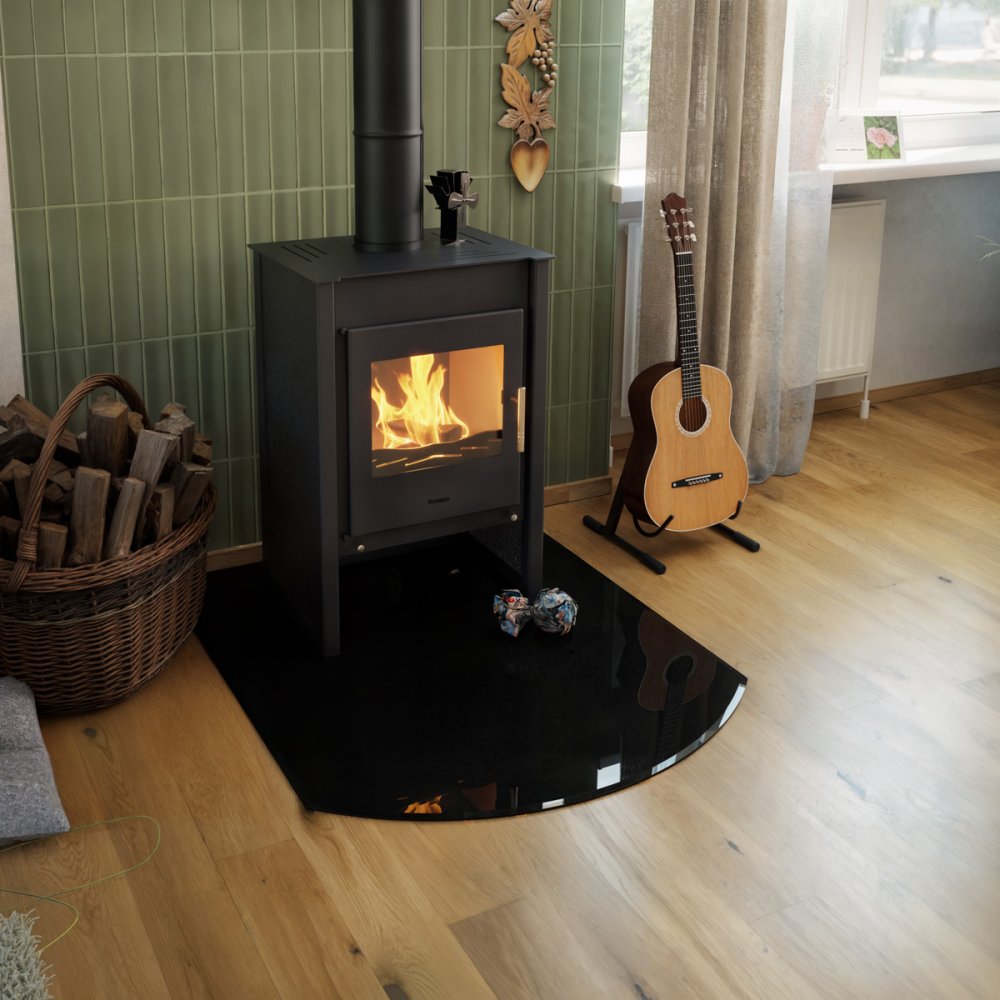 Sklo pod kamna - flamingo oblouk 1000x1200 mm, černé, fazeta / r500 / 6 mm