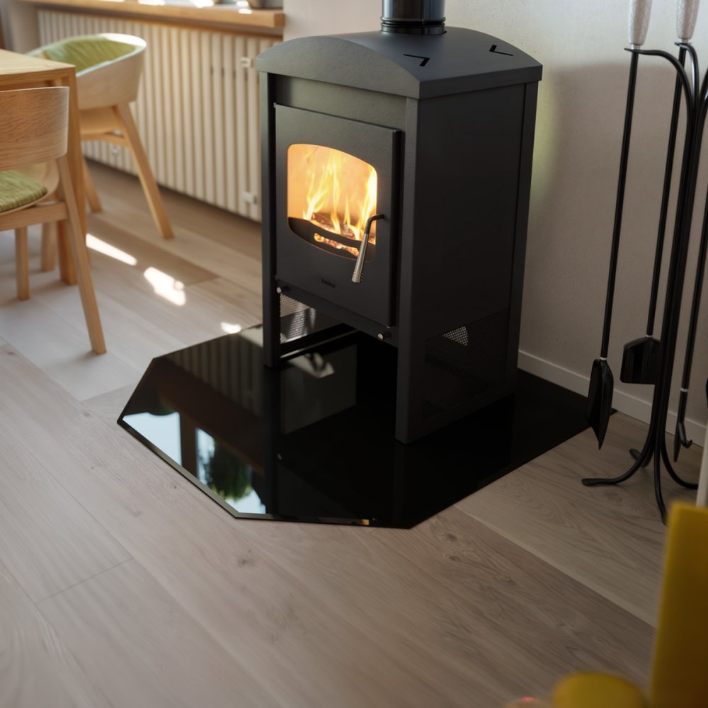 Sklo pod kamna - flamingo šestihran 1000x1000 mm, černé, fazeta / 6 mm