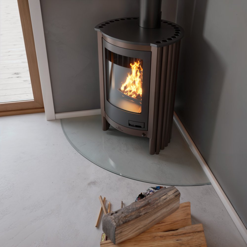 Sklo pod kamna - flamingo oblouk 1000x1000 mm, černé, fazeta / r500 / 6 mm