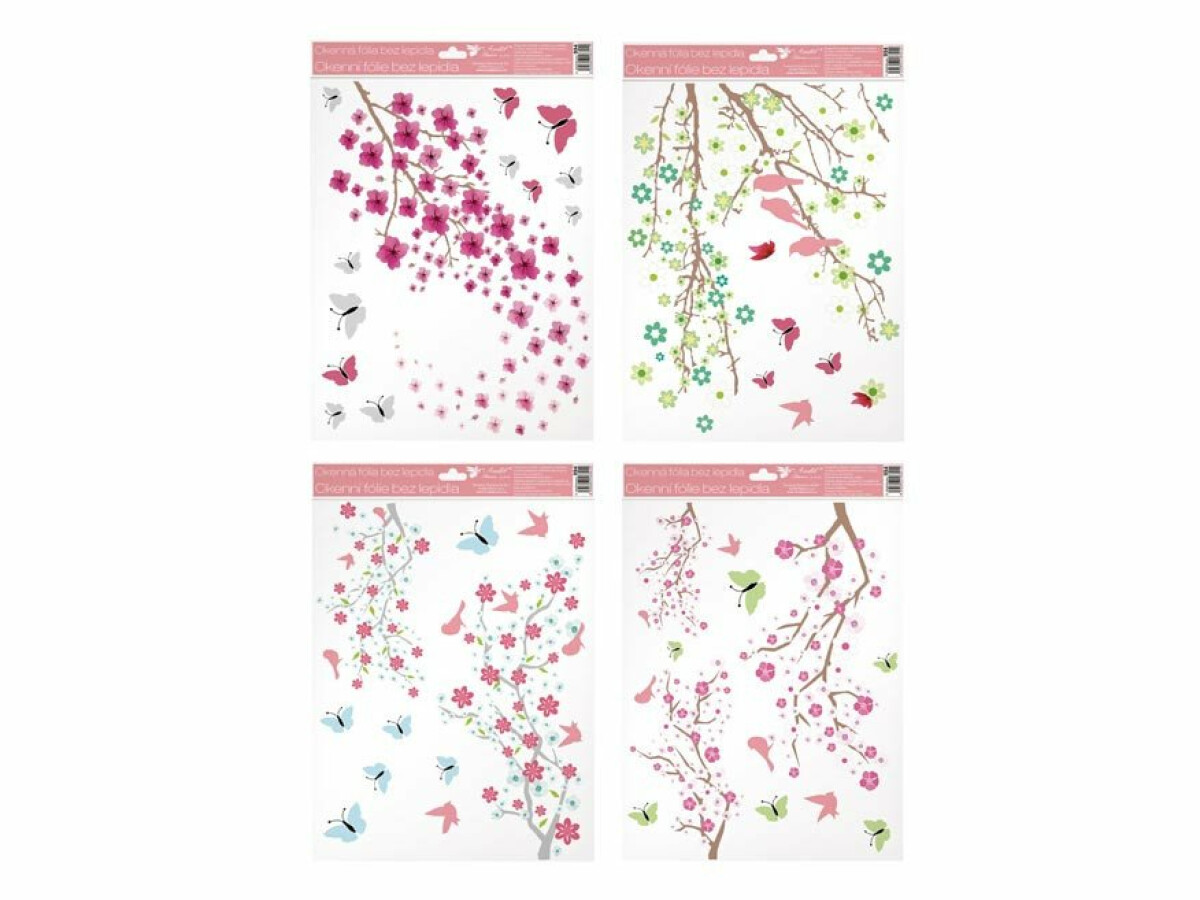 Okenní fólie 994 větve v květu s glitry, 30x42 cm
