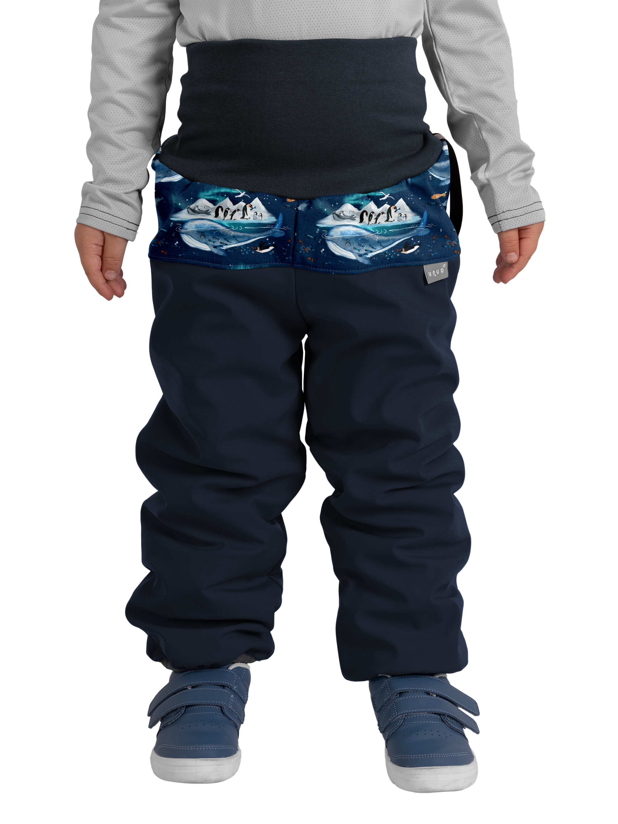 Batolecí softshellové oteplovačky s beránkem Plus, Tm. Modročerná, Tučňáci Velikost: 92/98