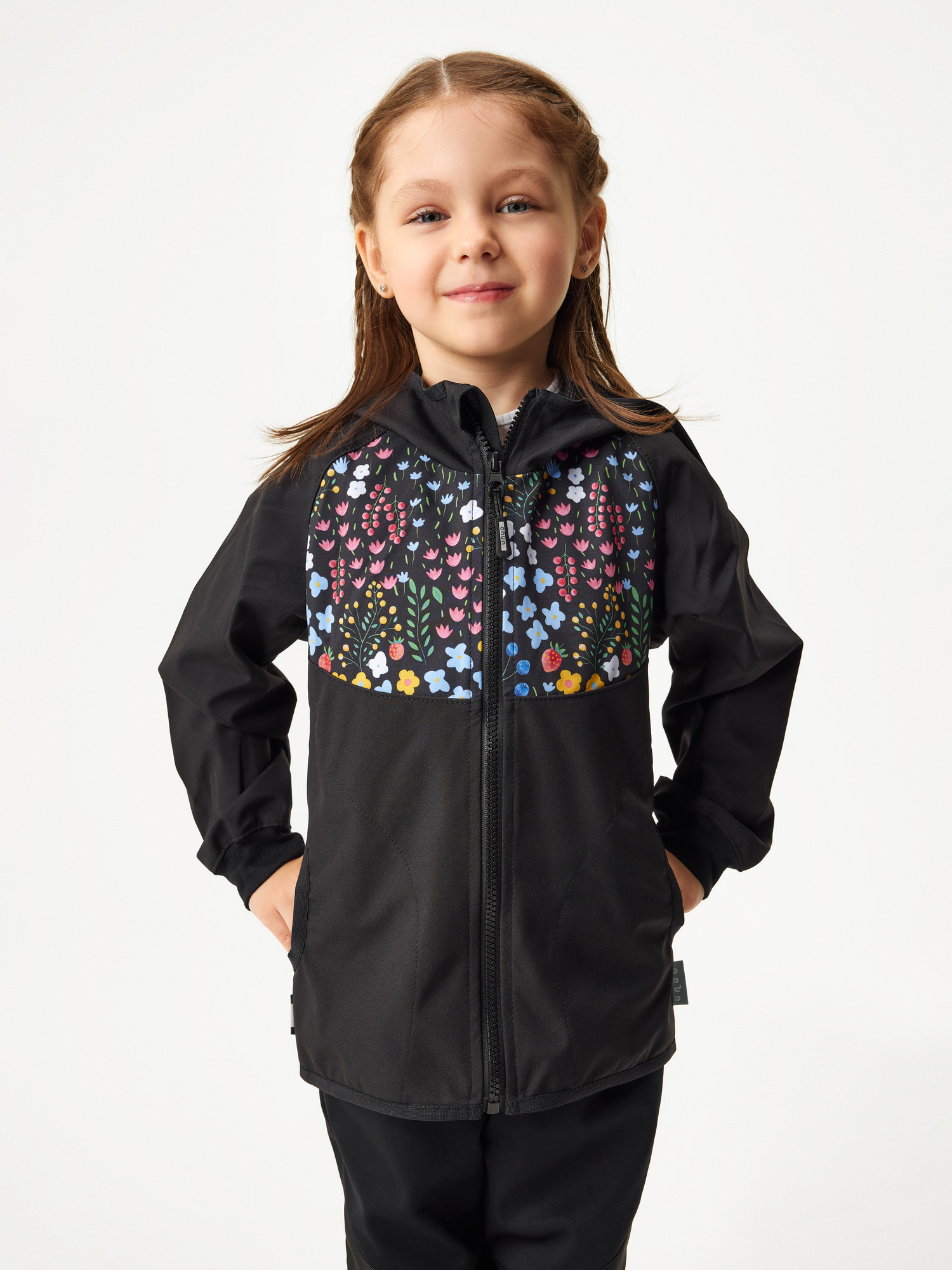 Dětská softshellová bunda bez zateplení pružná Basic, Černá, Květiny Velikost: 86/92