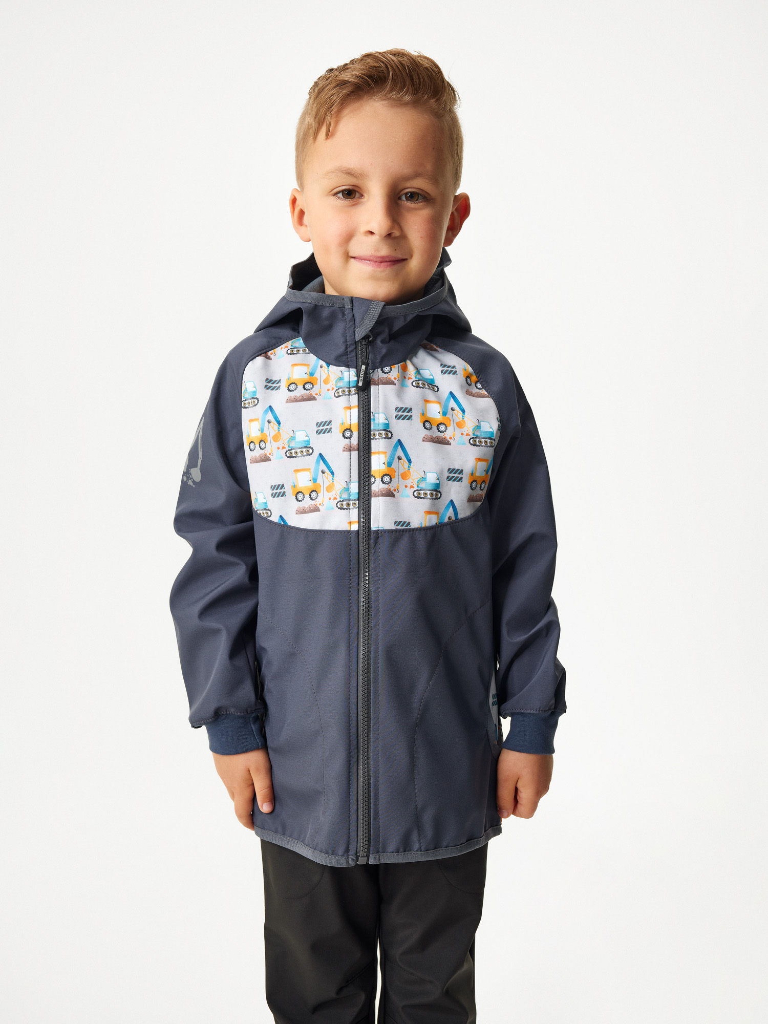 Dětská softshellová bunda bez zateplení Basic, Tm. Šedá, Bagry Velikost: 86/92