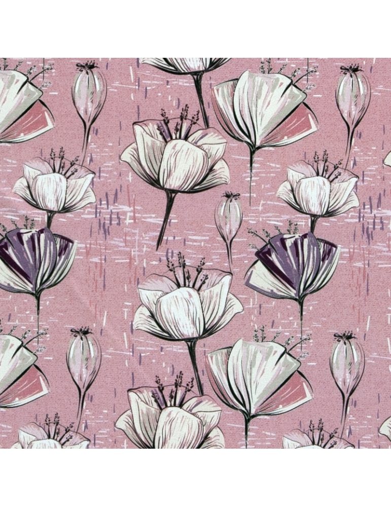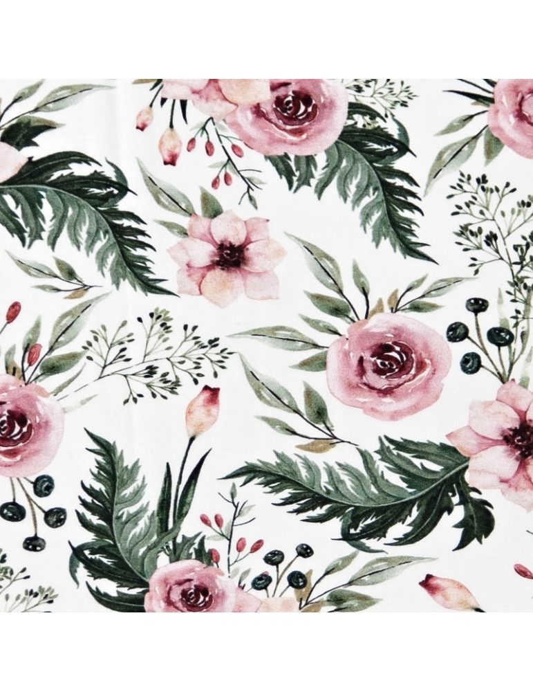 Teplákovina - potah na dětské madlo Thule - Květy starorůžová