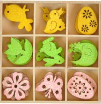 Dřevěné dekorace 3cm/27ks box XC20190791-8 mix